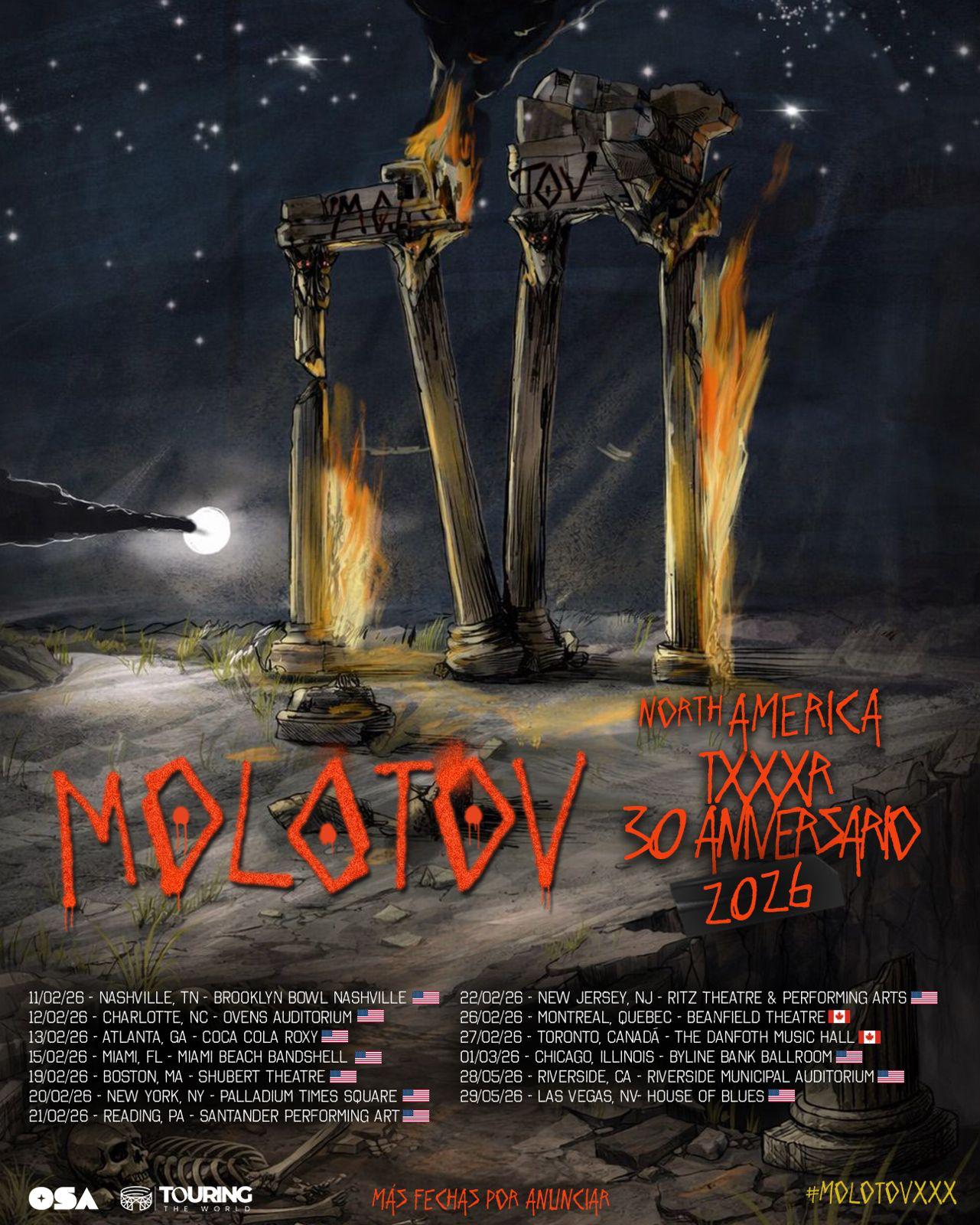 Molotov continuará con su gira de aniversario durante el mes de febrero en Estados Unidos y regresará a nuestro país en marzo para presentarse en Pa’l Norte en Monterrey y City Festival en Querétaro.